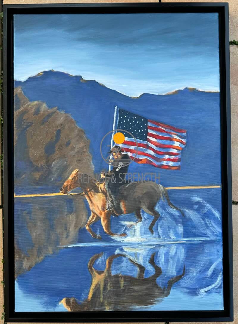 In den USA gibt es so viel mehr Kirchen und somit auch mehr Christen. Hier irritiert es niemanden, wenn ich mit einer Bibel auf dem Tisch, in einem Café sitze, weil man viel offener mit dem Glauben umgeht. Mag der Mensch auch viele Sorgen haben, so bekommt der bibeltreue Christ, seine Hilfe von dem lebendigen Gott. Dieses Gemälde möge Stärke, Kraft, Selbstbewusstsein und Freiheit ausstrahlen. Freiheit von Schuld, Sorge und Lüge. Denn danach sehnt sich unser Herz.